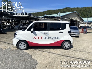 승용 에이텍모빌리티 [작업차량] 레이[차량색상] 화이트[랩핑타입] 부분랩핑 ..