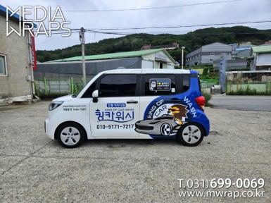 승용 무진물산 [작업차량] 레이[차량색상] 화이트[랩핑타입] 부분랩핑 ..