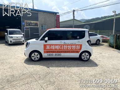 승용 포레메디한방병원 [작업차량] 레이[차량색상] 화이트[랩핑타입] 부분랩핑 (지붕 포함)..