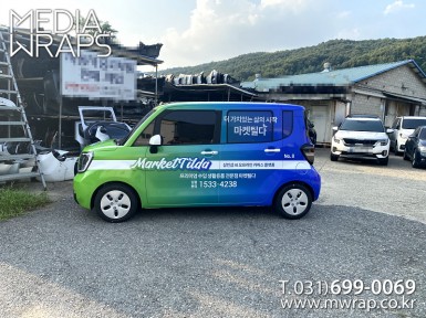 승용 마켓틸다 [작업차량] 레이 2대[차량색상] 화이트[랩핑타입] 전체랩핑 (지붕 포함)..