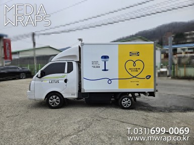 탑차·트럭 이케아 [작업차량] 1T탑차 4대[차량색상] 화이트[랩핑타입] 탑3면 전체랩핑..