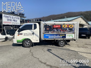 탑차·트럭 진짜고수 [작업차량] 1T탑차[차량색상] 화이트[랩핑타입] 부분랩핑..