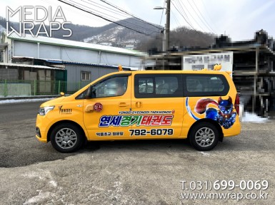 승합·SUV 연세경기태권도 [작업차량] 그랜드스타렉스 [차량색상] 옐로우[랩핑타입] 부분랩핑..