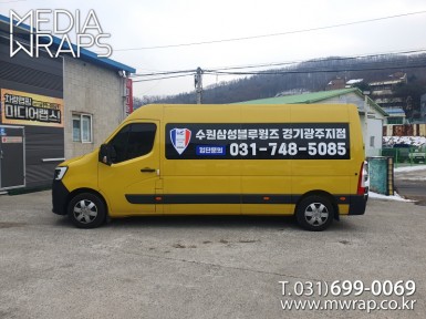 승합·SUV 수원삼성블루윙즈 [작업차량] 15인승 르노마스터 (어린이보호차량)[차량색상] 옐로우[랩핑타입] 부분랩핑..