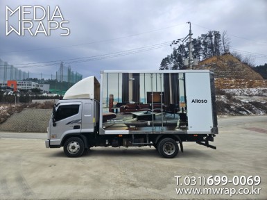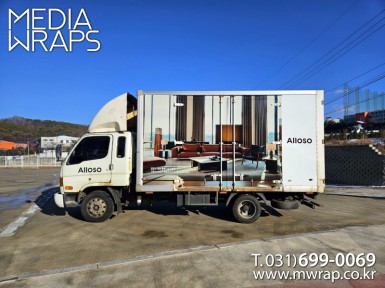 탑차·트럭 알로소 [작업차량] 2.5T탑차 1대 , 3.5T윙바디탑차 3대[차량색상] 화이트[랩핑타입] 탑2면 전체랩핑..