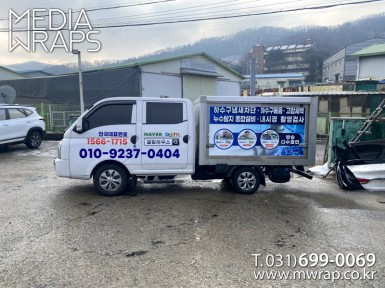 탑차·트럭 칠과줄눈 [작업차량] 1T더블캡카고트럭[차량색상] 화이트[랩핑타입] 부분랩핑..