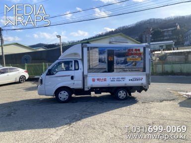 탑차·트럭 일상미담 [작업차량] 1T탑차 2대[차량색상] 화이트[랩핑타입] 탑4면 전체랩핑..