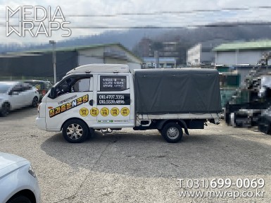 탑차·트럭 홈케어마스터 [작업차량] 1T카고트럭[차량색상] 화이트[랩핑타입] 부분랩핑..