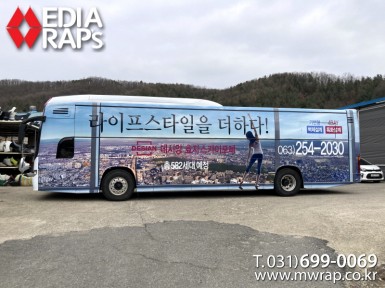 버스 전주데시앙효자스카이포레 [작업차량] BX212 2대[차량색상] 화이트[랩핑타입] 전체랩핑 (창문 : 밀폐형)..