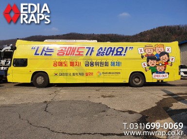 버스 한국주식투자자연합회 [작업차량] BH120F 대형버스[차량색상] 화이트&레드[랩핑타입] 전체랩핑 (창문 : 밀폐형)..