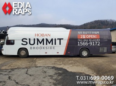 버스 호반써밋 청주 [작업차량] BH120F 대형버스 2대[차량색상] 화이트&레드[랩핑타입] 전체랩핑 (창문 : 밀폐형)..