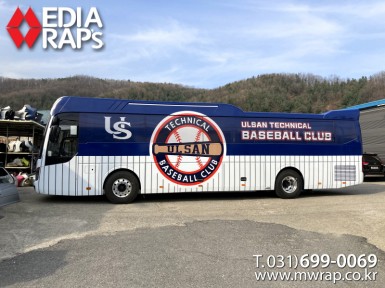 버스 울산공고야구클럽 [작업차량] 현대유니버스노블[차량색상] 화이트[랩핑타입] 전체랩핑 (창문 : 타공 필름)..