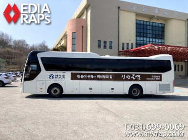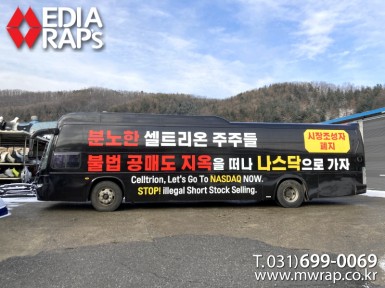 버스 셀트리온나스닥이전추진위원회 [작업차량] BH120F 대형버스[차량색상] 레드[랩핑타입] 전체랩핑 (창문 : 밀폐형)..