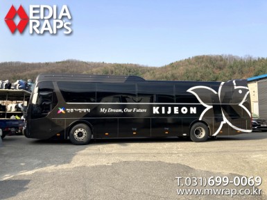버스 전주기전대학교축구부 [작업차량] 현대유니버스노블[차량색상] 화이트[랩핑타입] 전체랩핑 (창문 : 타공 필름)..