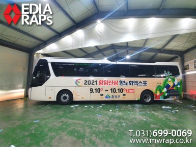 버스 함양산삼항노화엑스포 [작업차량] 현대유니버스노블[차량색상] 화이트[랩핑타입] 하프랩핑..