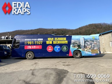버스 봉선남양휴튼3차 [작업차량] 그랜버드파크웨이[차량색상] 화이트[랩핑타입] 전체랩핑 (창문 : 밀폐형)..