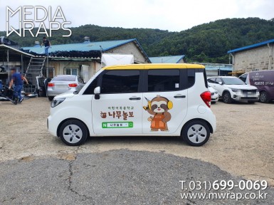 승용 나무놀보 [작업차량] 레이[차량색상] 화이트[랩핑타입] 하프랩핑 (지붕 포함)..