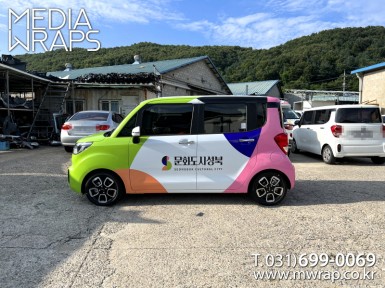 승용 문화도시성북 [작업차량] 레이[차량색상] 화이트[랩핑타입] 하프랩핑 (지붕 포함)..