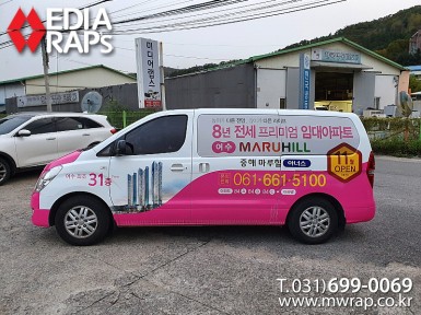 승합·SUV 여수중해마루힐아너스 [작업차량] 그랜드스타렉스 2대[차량색상] 블랙[랩핑타입] 풀랩핑(창문:타공필름)  ..