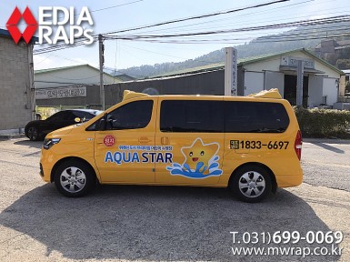 승합·SUV 아쿠아스타 [작업차량] 그랜드스타렉스[차량색상] 어린이보호차량[랩핑타입] 부분랩핑  ..