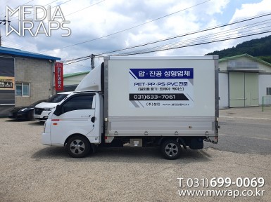 탑차·트럭 우림건축 [작업차량] 1T저상탑차 [차량색상] 화이트[랩핑타입] 탑3면 전체랩핑..