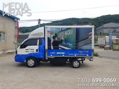 탑차·트럭 스마트터치 [작업차량] 1T윙바디탑차[차량색상] 화이트[랩핑타입] 탑3면 전체랩핑..