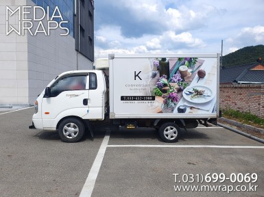 탑차·트럭 K컨벤션웨딩홀 [작업차량] 1T탑차 [차량색상] 화이트[랩핑타입] 탑3면 전체랩핑..