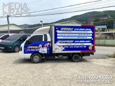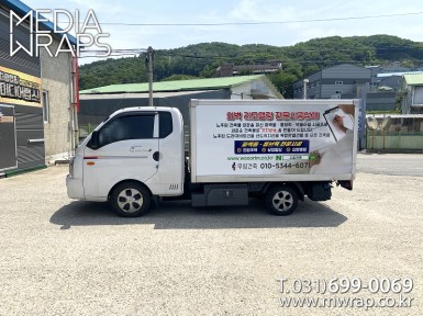 탑차·트럭 오더히어로 [작업차량] 1T탑차[차량색상] 화이트[랩핑타입] 탑4면 + 캘빈 전체랩핑 (지붕 포함)..
