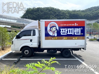 탑차·트럭 동아제약(판피린Q)동보약품 [작업차량] 1T탑차 [차량색상] 화이트[랩핑타입] 부분랩핑..
