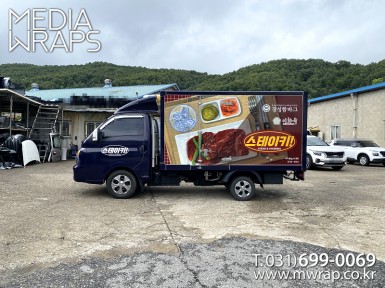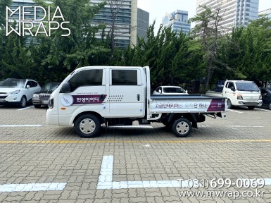 탑차·트럭 한성아이디 [작업차량] 1T카고트럭[차량색상] 화이트[랩핑타입] 적재함3면 부분랩핑..