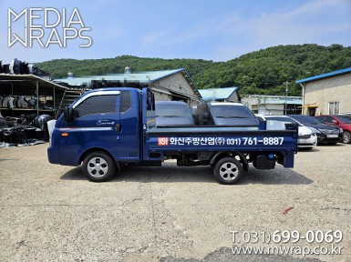탑차·트럭 화신주방산업 [작업차량] 1T카고트럭[차량색상] 블루[랩핑타입] 부분랩핑..