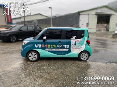 승용 백세플란트치과 [작업차량] 레이[차량색상] 화이트[랩핑타입] 전체랩핑 ..
