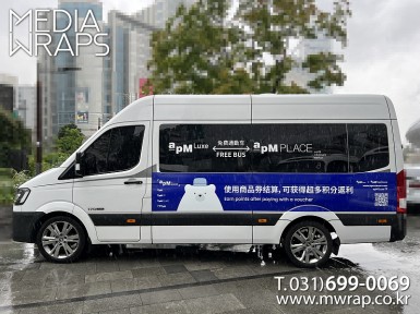 버스 에이피엠이커머스 [작업차량] 카운티[차량색상] 화이트[랩핑타입] 부분랩핑 ..