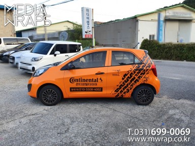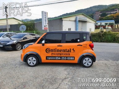 승용 콘티넨탈타이어(기성타이어) [작업차량] 레이[차량색상] 화이트[랩핑타입] 전체랩핑 (지붕 포함)..