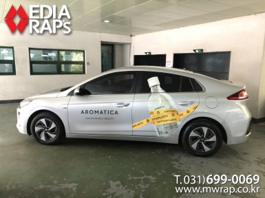 승용 아로마티카 [작업차량] 아이오닉[차량색상] 폴라 화이트[랩핑타입] 부분랩핑..