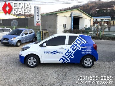 승용 귀뚜라미 [작업차량] 모닝[차량색상] 화이트[랩핑타입] 하프랩핑..