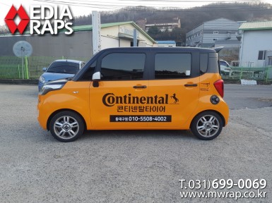 승용 콘티넨탈타이어(동국타이어경남) [작업차량] 레이[차량색상] 화이트[랩핑타입] 풀랩핑 (지붕포함 / 창문타공OneWay)..