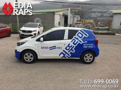 승용 귀뚜라미 [작업차량] 모닝[차량색상] 화이트[랩핑타입] 하프랩핑..