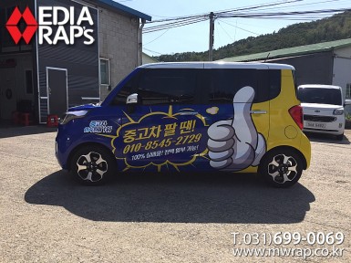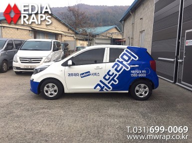 승용 귀뚜라미 [작업차량] 모닝[차량색상] 화이트[랩핑타입] 하프랩핑..