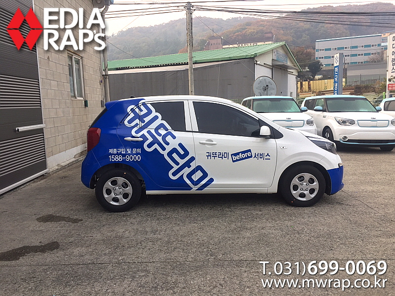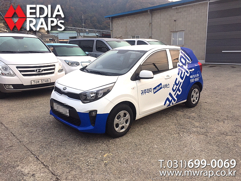 승용 귀뚜라미 [작업차량] 모닝[차량색상] 화이트[랩핑타입] 하프랩핑..