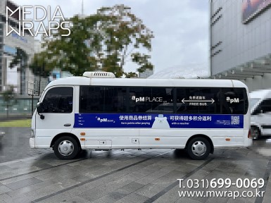 버스 에이피엠이커머스 [작업차량] 카운티[차량색상] 화이트[랩핑타입] 부분랩핑 ..
