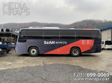 버스 세아베스틸(세아탁구단) [작업차량] 대우BS090[차량색상] 레드[랩핑타입] 전체랩핑 ..