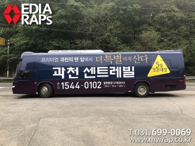 버스 과천센트레빌 [작업차량] BH120 45인승 버스[차량색상] 레드&화이트[랩핑타입] 전체랩핑  ..