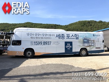 버스 세종포스힐 [작업차량] BH120F 대형버스[차량색상] 화이트&레드[랩핑타입] 전체랩핑  ..