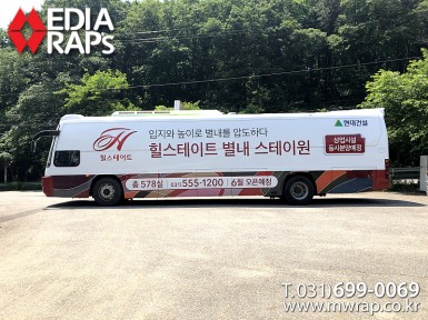 버스 힐스테이트별내스테이원 [작업차량] BH120F 대형버스 2대[차량색상] 화이트&레드[랩핑타입] 전체랩핑  ..