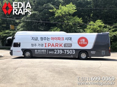 버스 청주가경아이파크 [작업차량] BH120F 대형버스 2대[차량색상] 화이트[랩핑타입] 전체랩핑 ..
