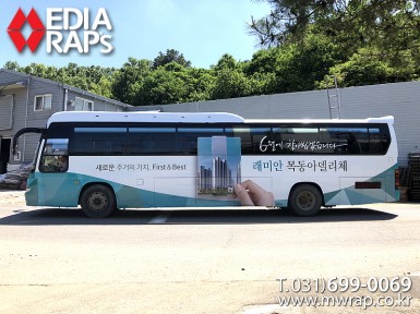 버스 래미안 목동아델리체 [작업차량] BH120F 대형버스[차량색상] 화이트[랩핑타입] 전체랩핑  ..
