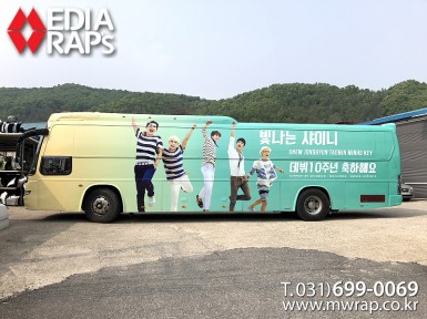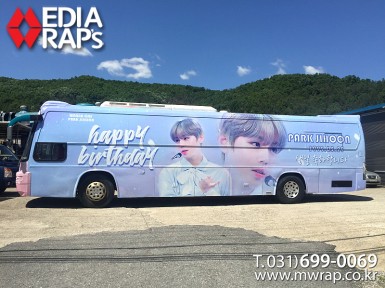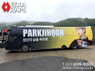 버스 워너원 박지훈버스(1호) [작업차량] BH120F 대형버스[차량색상] 화이트[랩핑타입] 전체랩핑  ..