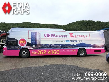 버스 소양강 리버파크뷰 오피스텔 [작업차량] BH120F 대형버스[차량색상] 레드[랩핑타입] 전체랩핑 ..