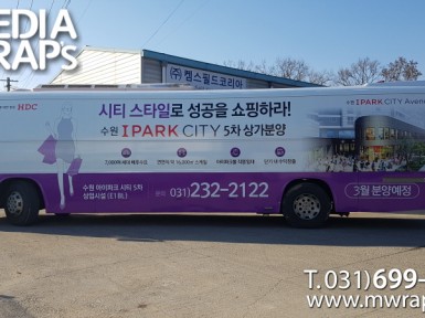 버스 수원아이파크시티5차 [작업차량] BH120F 대형버스[차량색상] 화이트[랩핑타입] 풀랩핑..